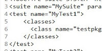 If we want to run all the classes of a package, no need to mention all the classes of that package under test tag, can have a package tag as mentioned below: