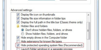 Uncheck the “Hide Protected operating system files (Recommended)” option.