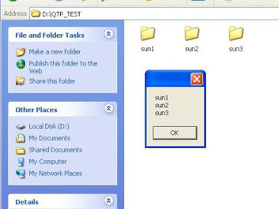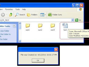 Set f1 = CreateObject(“Scripting.FileSystemObject”) Set f2 = f1.GetFile(“D:QTP_TESTtest.docx”) S = “File was Created on: “&f2.DateCreated Msgbox S